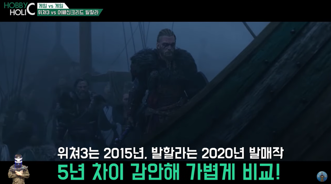 아무래도 위쳐3 와일드헌트는 2015년작, 어쌔신크리드 발할라는 2020년작이다보니