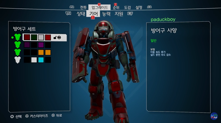 직업이 3개이고, 단순 슈팅게임이다보니 각 플레이어만의 매력을 표현하기엔 한계가 많지 않을까 생각했었는데 나름 그런 부분에 대한 고려를 한건지 장비의 외형 커스터마이징이 그래도 꽤 신경써서 갖춰져 있었습니다. 각 파트와 부위별로 컬러 튜닝이 가능하여 본인이 원하는 느낌으로 변신이 가능합니다. (물론 단순히 컬러 도색일 뿐이니 디테일한 커스터마이징을 기대하긴 힘듭니다) 간편한 조작감, 편리한 UI구성은 확실히 친구, 연인끼리 즐기기 딱 좋은 멀티게임이 될 수 있도록 게임환경을 최대한 간편하게 구성하고자 노력한 흔적이 보입니다.