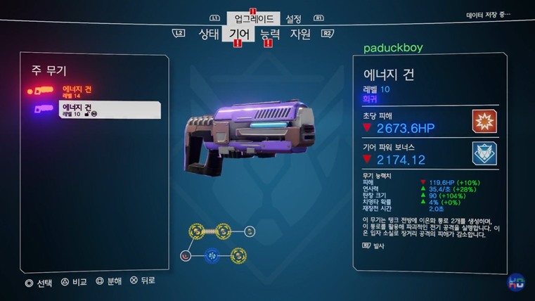 무기의 종류와 등급이 나름 다양합니다. 나만의 무기를 찾아봅시다. 주무기의 경우 각 직업별로 사용 가능한 특정 무기들이 정해져 있긴합니다. 예를 들어 사보추어는 SMG, 탱크는 레이저건으로 고정되어 있는 식이죠. 단 그와 상관없게 보조무기와 중화기는 직업별로 공용으로 마음껏 골라 사용할 수 있기 때문에 리볼버, 샷건은 물론 중화기는 미니건, 로켓런처까지 준비되어 있으며 취향별로 골라 사용이 가능합니다.